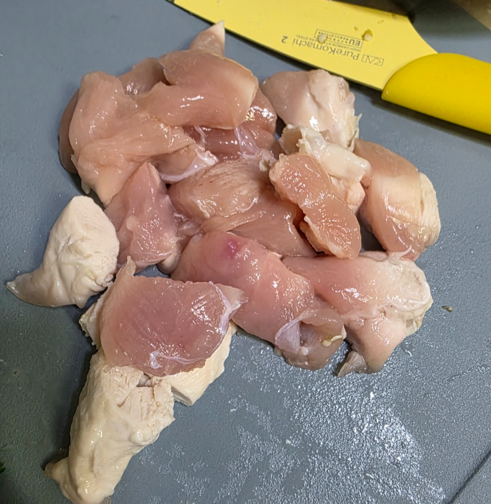 깨끗하게 씻어서 닭안심과 마찬가지로 한입크기로 썰어줍니다. 재료준비는 이걸로 끝이에요.