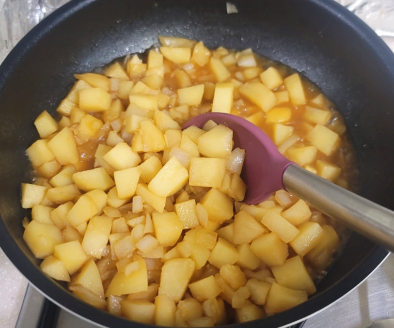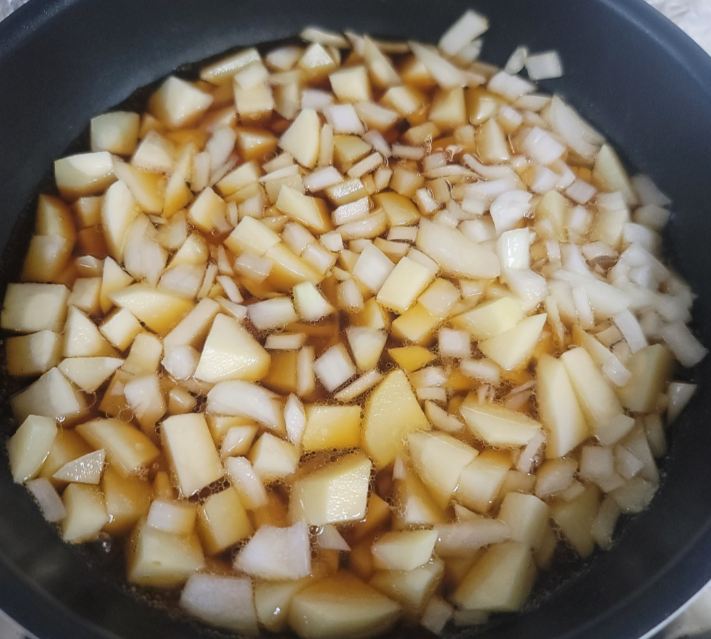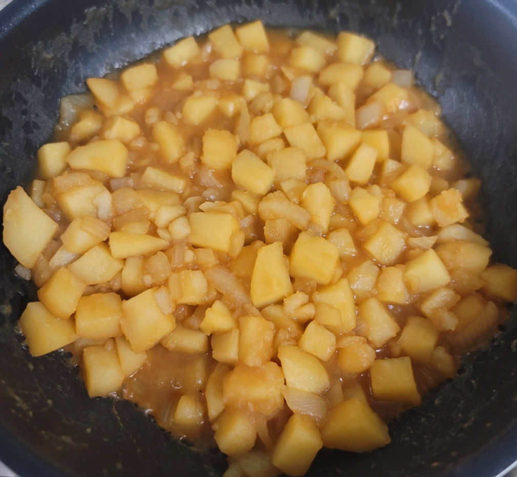 감자 5개, 양파 반개, 간장 6T, 올리고당 7T, 식용유 3T
