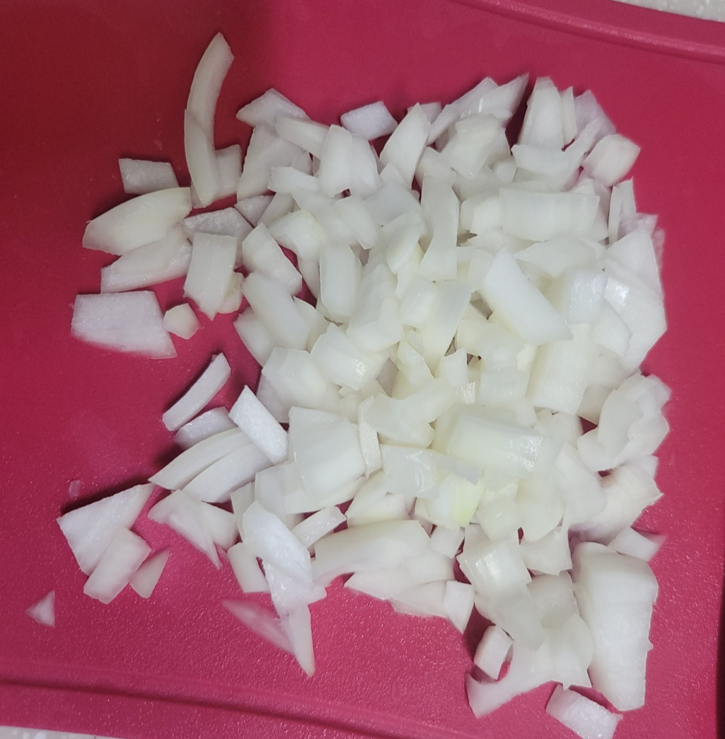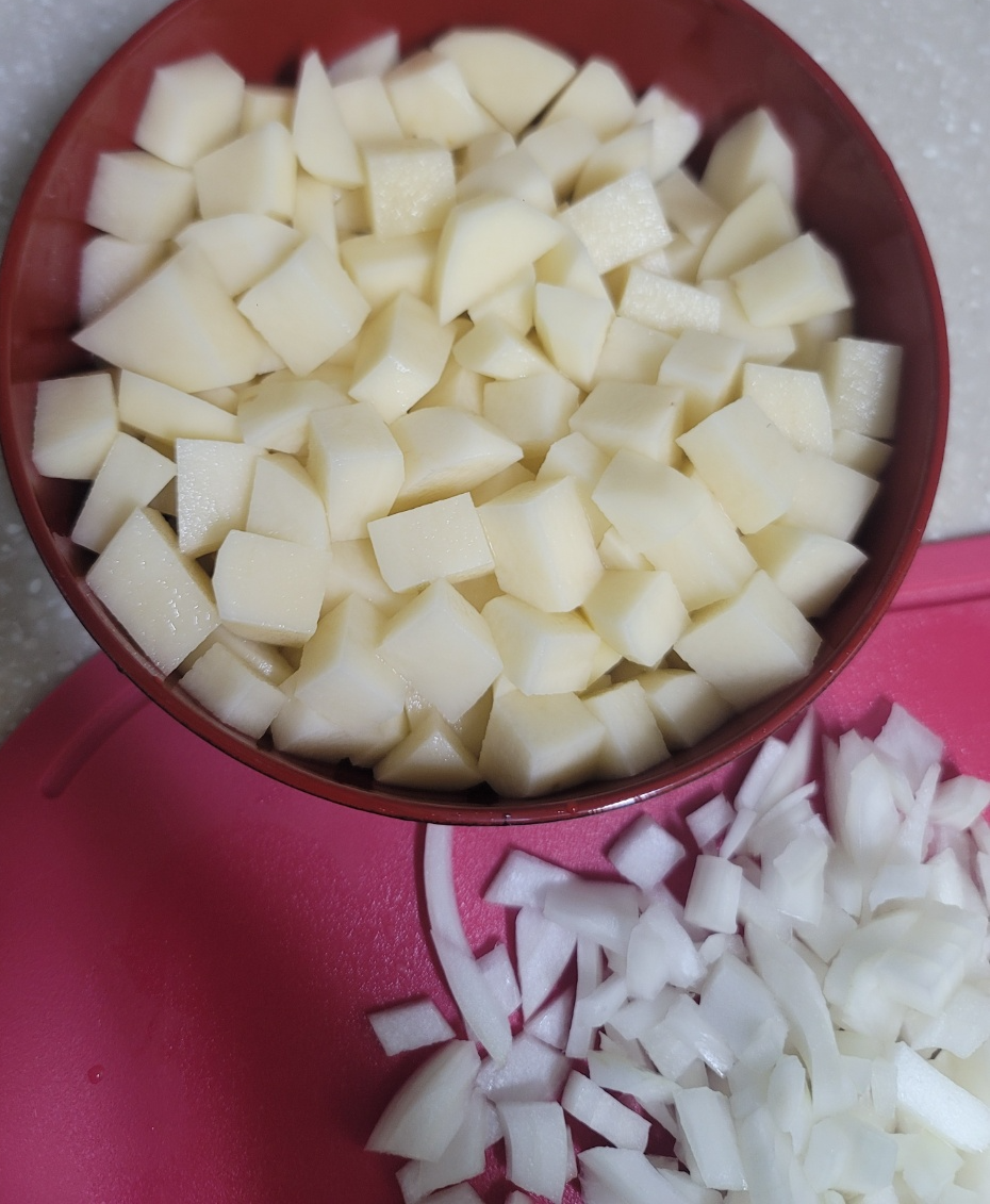 양파는 잘게 썰어줍니다. 감자와 양파 준비완료!
