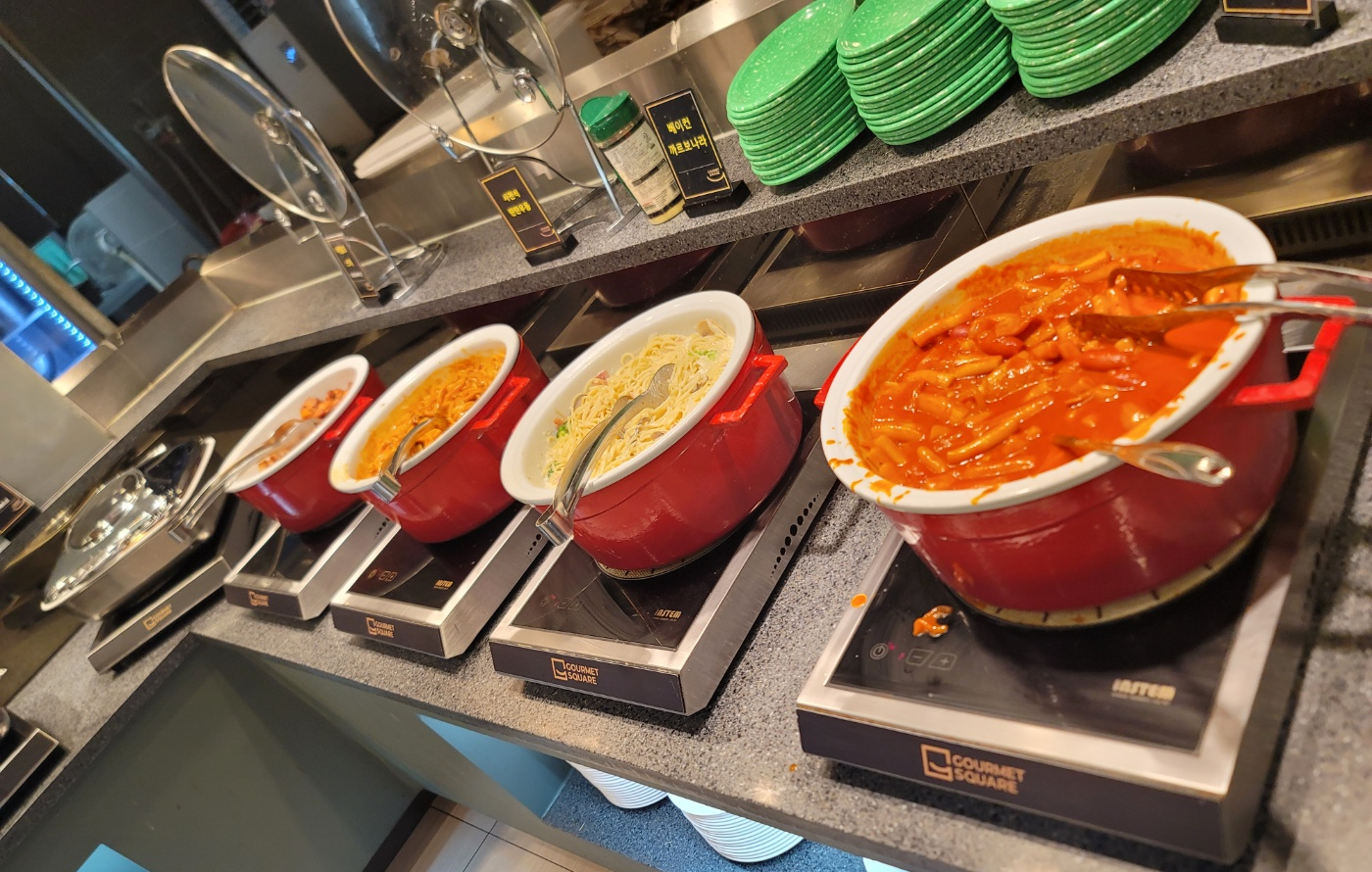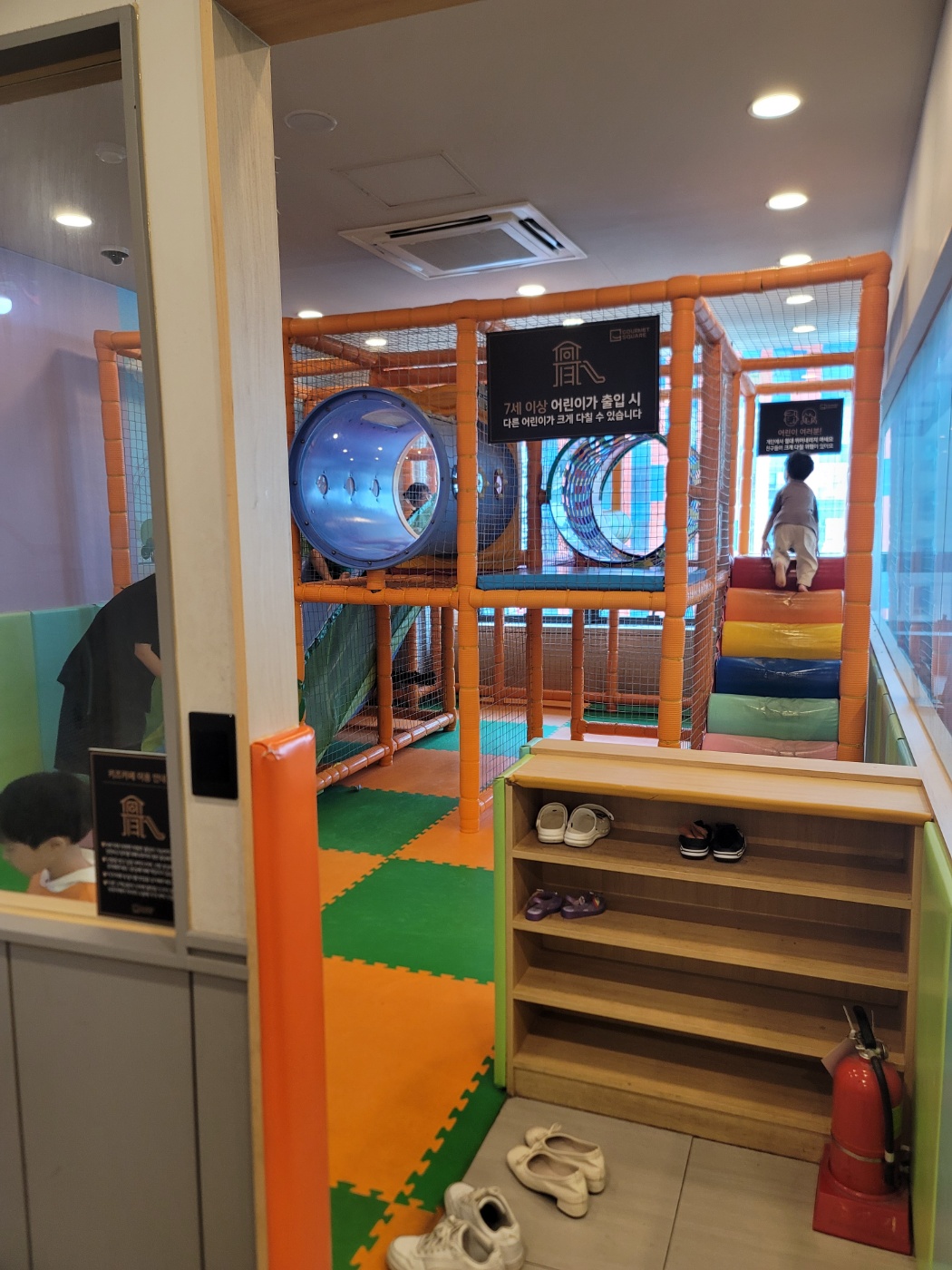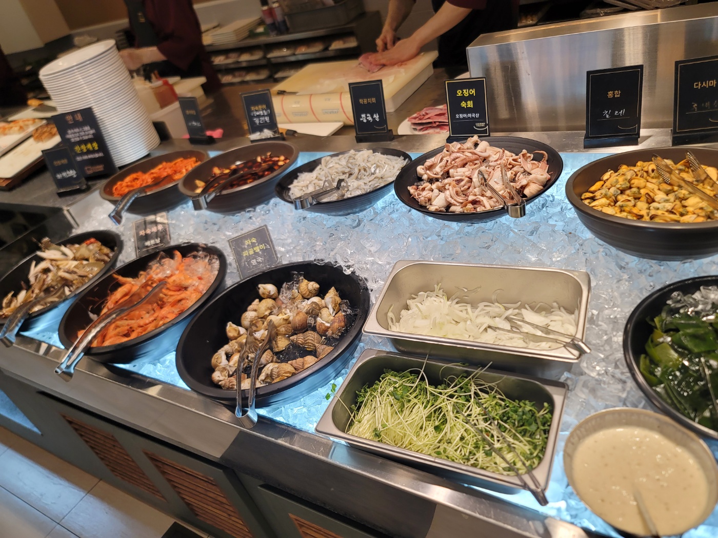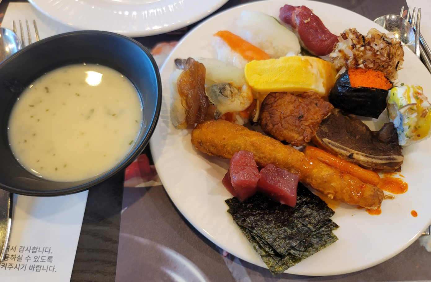 전체적으로 음식 맛은 무난했어요. 자주 먹을 수 없는 해산물을 잔뜩 먹을 수 있어서 좋았답니다. 매운 걸 먹지 못하는 아이들이 먹을 수 있는 음식들이 많아서 부담 없이 올 수 있을 거 같아요. 놀이방이 잘 보이는 자리를 배정해 준 것도 배려해 준거라고 생각됩니다. 하지만 자리가 구석이라 그런지 접시를 자주 치워주진 않았어요. 요청하면 바로 치워주긴 했습니다. 케이크 집는 집게를 깨끗한 집게로 전부 교체하고 있던 모습도 인상적이었습니다. 위생에 신경 쓰는 모습이었어요. 수유에서 아이와 외식을 하게 된다면 재방문할 거 같아요.
