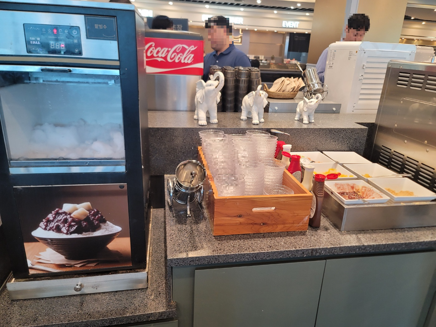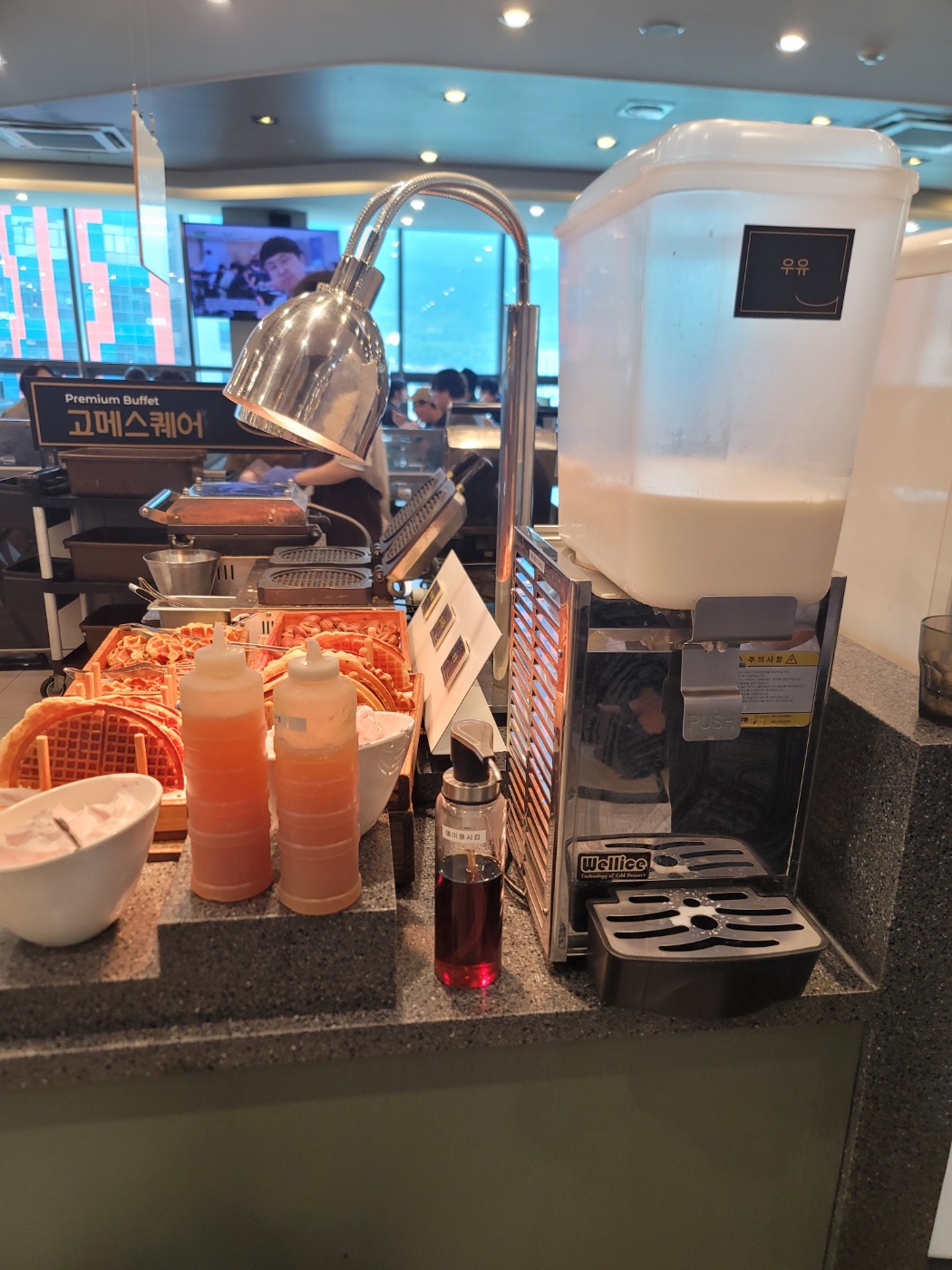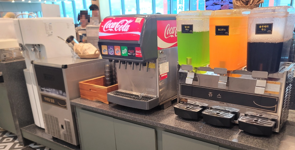 빵, 우유, 아이스크림, 빙수, 슬러시, 식혜, 수정과도 있습니다. 빵은 직원들이 구워주시니 절대 기계에 손대지 마세요. 위험합니다.