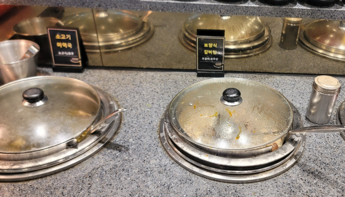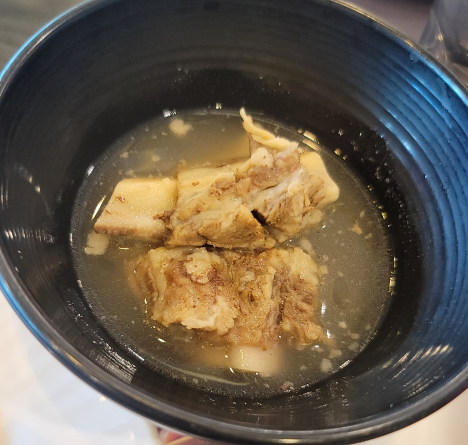 접시마다 참치 보이시나요. 참치가 정말 맛있습니다. 그리고 갈비탕이 갈비탕 식당 맛이 나요. 뼈랑 고기도 잘 분리되고 질기지도 않고 고기가 부드럽더라고요. 살짝 느끼해서 백김치와 쫄면도 먹어줍니다. 사진으로 보니 많이도 먹었네요.