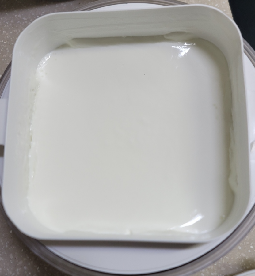 누름판과 쉽게 분리가 됐네요. 젓가락이 꽂힐정도록 꾸덕한 그릭요거트가 완성되었습니다.