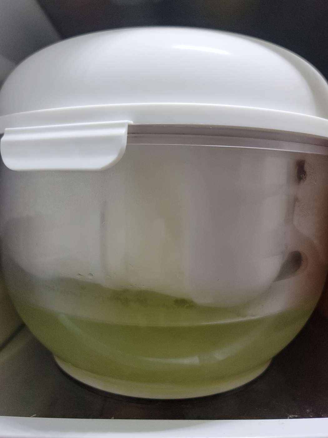 누름판 없이 뚜껑을 닫고 냉장고에 넣어줍니다. 냉장고에서 최소 15~20시간 1차 유청분리를 해주세요. 최대 24시간까지만 권장합니다. 18시간 지난 후 유청이 많이 나온 모습을 볼 수 있습니다.