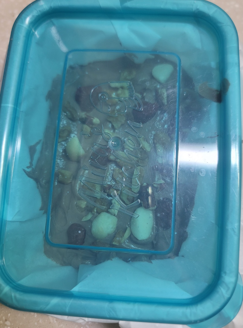 냉동실 냄새가 들어가지 않게 뚜껑을 닫아주고 냉동실로 들어갑니다. 최소 4시간 이상 냉동해 주세요.