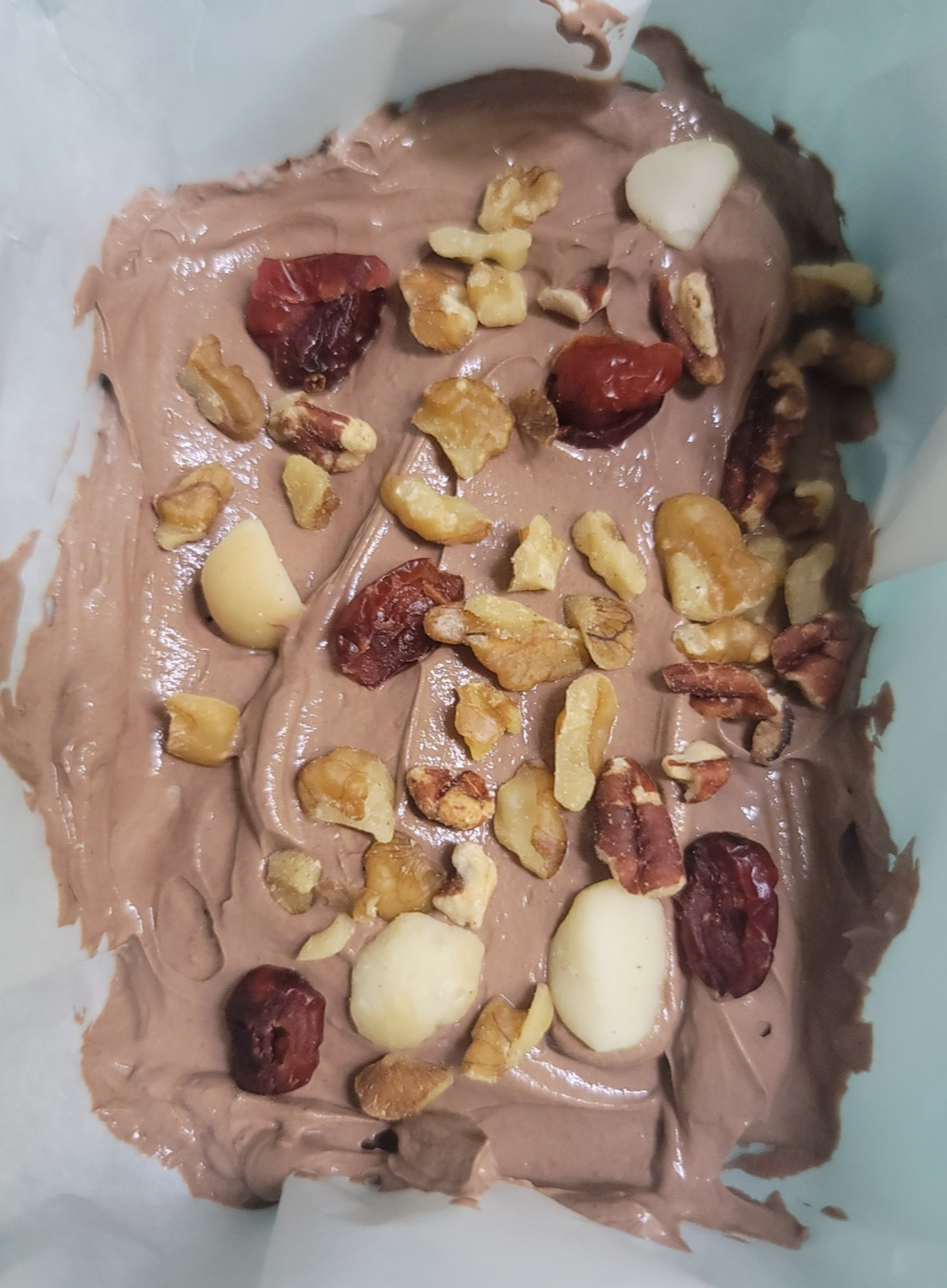 먹기 좋은 크기로 잘라줍니다. 냉동하기 전에 견과류를 안 눌렀더니 견과류가 분리가 되네요.