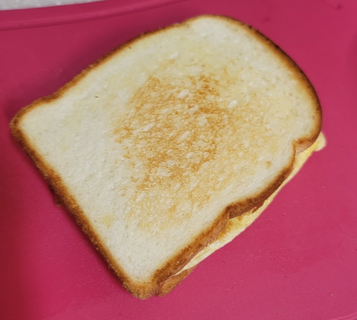 녹인 버터 위에 식빵을 놓아줍니다. 밑면이 노릇노릇해지면 또 버터를 팬에 녹이고 뒤집어줍니다. 양면이 노릇 바삭하게 만들면 됩니다. 새 식빵으로 한 번 더 반복해 주세요.