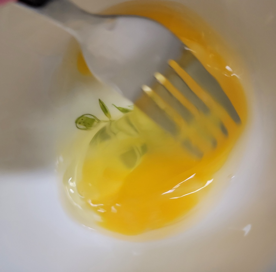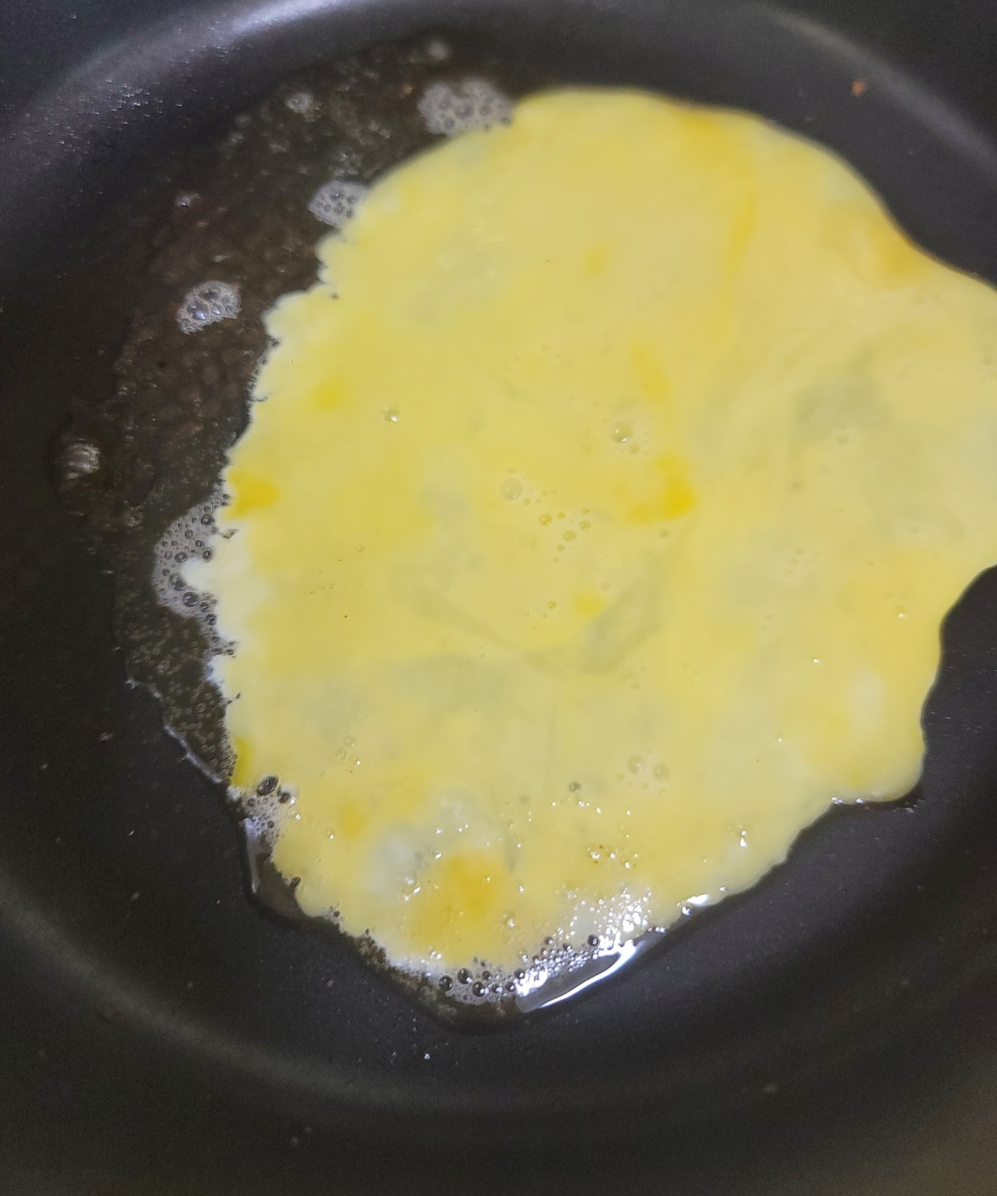 계란을 2개 풀어줍니다. 사실 저는 1개만 했더니 너무 계란 양이 적었어요. 2개가 적당할 것 같아요.
