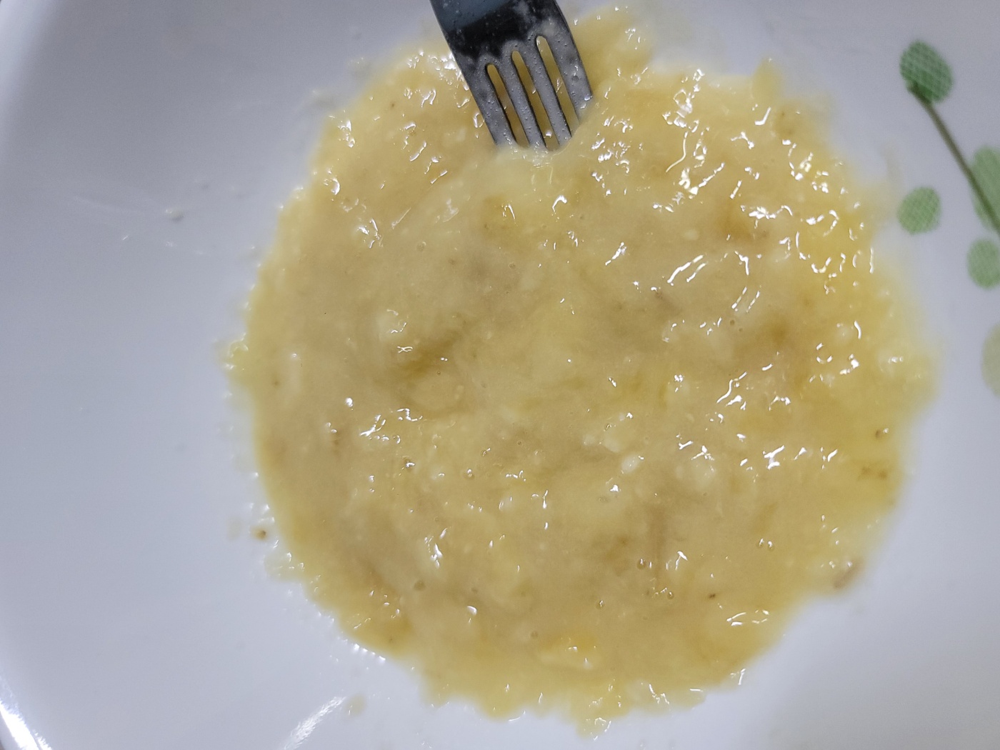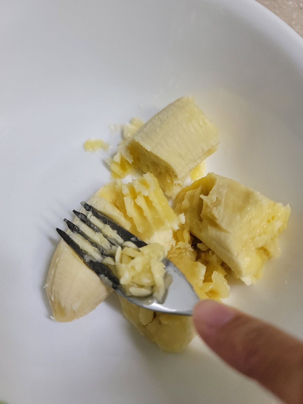 바나나 1개를 포크로 열심히 으깨줍니다. 죽 질감이 될정도로 곱게 만들어주세요.
