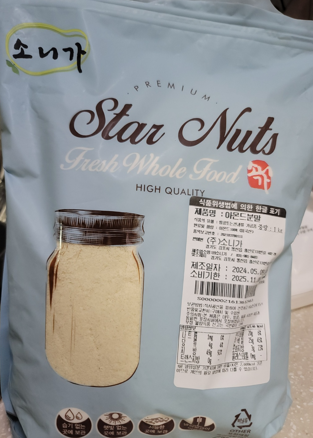 키토빵의 핵심 포인트! 밀가루대신 쓰는 아몬드가루 입니다. 쿠팡에서 아몬드가루 1kg 만원 초반대에 구매했어요.