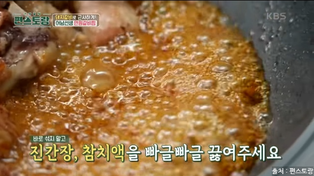 벌써 맛있는 진갈색 빛깔의 간장갈비찜 비주얼이 나옵니다.