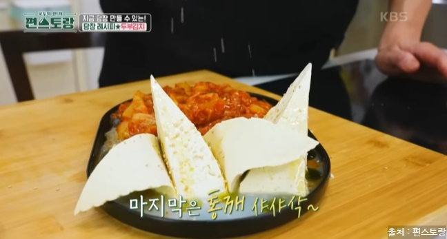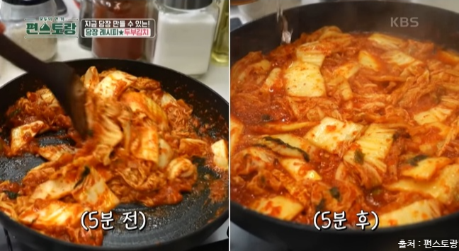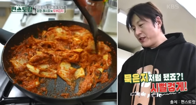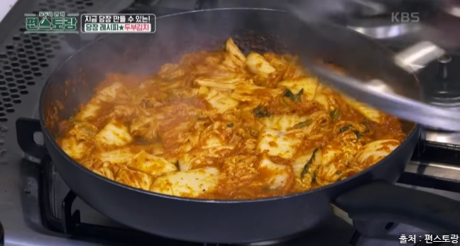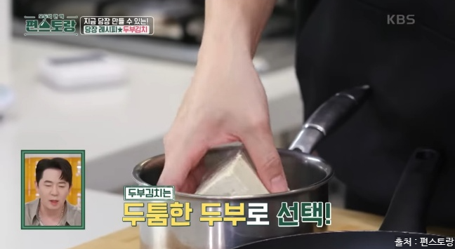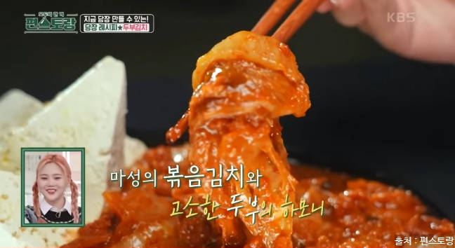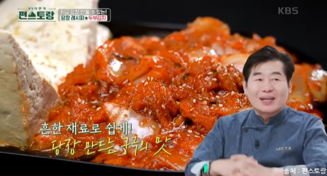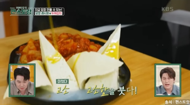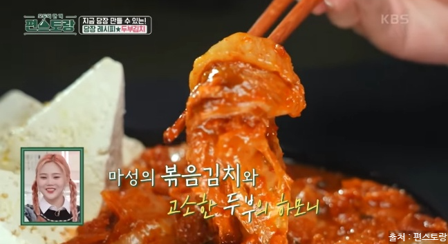 편스토랑에서 두부김치 레시피를 소개했는데요. 두부김치는 집 냉장고에 하나쯤은 남아있는 두부와 한국인이라면 냉장고에 있는 필수 아이템 김치로 맛있게 만들 수 있는 요리입니다. 김치는 발효과정을 거쳐 유산균이 풍부하고 각종 비타민, 미네랄은 면역 체계를 강화시킵니다. 다양한 항산화 성분이 포함되어 있으며 김치는 혈중 콜레스테롤 수치를 낮추는데 도움을 줍니다. 두부도 좋은 효능이 많은데요. 두부는 고단백 식품으로 칼슘과 마그네슘이 풍부하게 들어 있어 뼈 건강을 유지하고 골다공증 예방에 도움을 줍니다. 두부는 저칼로리 식품으로 포만감을 주면서 칼로리가 낮아 다이어트에 도움이 됩니다. 두부는 쉽게 소화되어 위에 부담을 주지 않아 소화 장애가 있는 사람들에게도 좋습니다. 이렇게 몸에 좋은 김치와 두부가 만나 맛있는 야식으로 탄생한 두부김치! 두부김치 레피시를 당장 만나러 가볼게요.