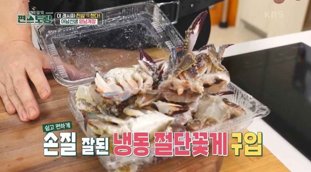 양념게장을 만들려면 꼭 냉동 꽃게를 이용해야 합니다. 생물 꽃게는 양념에 무치면 살이 물러져 냉동 꽃게를 사용해야 탱글한 꽃게살을 유지할 수 있습니다. 냉동 절단꽃게 1kg에 만 원대라 생물 꽃게에 비해 가격도 저렴하고 조리도 편합니다.