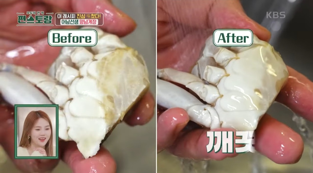 냉동 꽃게를 손질할 때 절대 물에 담그면 안 됩니다. 배딱지에 붙어있는 노란 이물질만 흐르는 물에 솔로 쓱쓱 닦아주고 살 없는 다리는 가위로 잘라줍니다. 잘라야 나중에 먹기 더 편합니다. 집게발은 꼭 남겨주세요. 마무리로 흐르는 물에 살짝 헹궈줍니다.