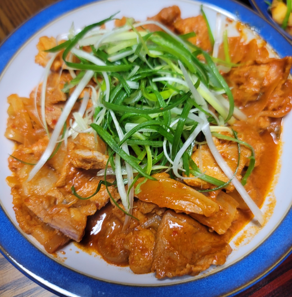 깔끔하게 먹고 싶어서 파채를 올려봤어요. 처음은 국물 있게 먹어보고 두 접시 다 먹고 모자라서 남은 고기를 바싹 구웠는데요. 둘 다 맛있어서 어떤 게 더 맛있다 선택을 못하겠네요. 모든 가족들이 엄지 척을 날려줬어요. 성공적인 제육볶음이었습니다.