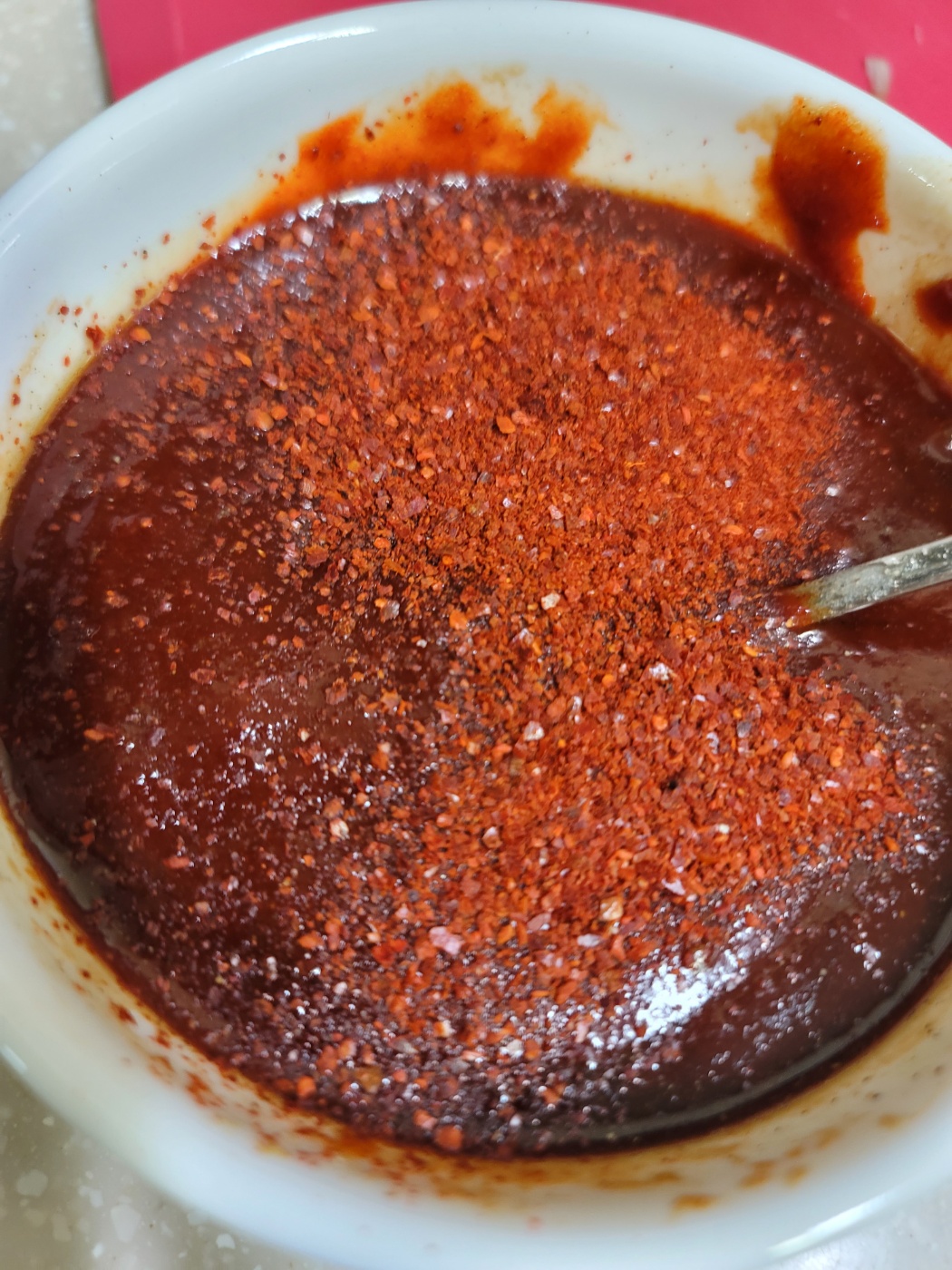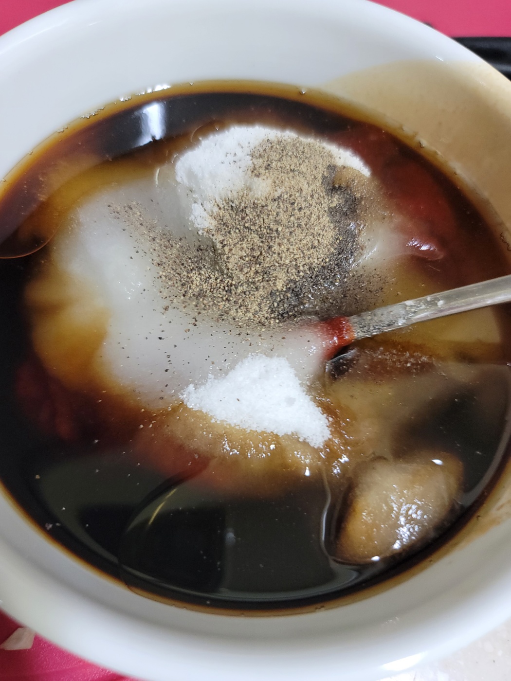 고추장 10T, 간장 5T, 설탕 7T, 참기름 5T, 후추 1T를 넣고 열심히 섞어줍니다.