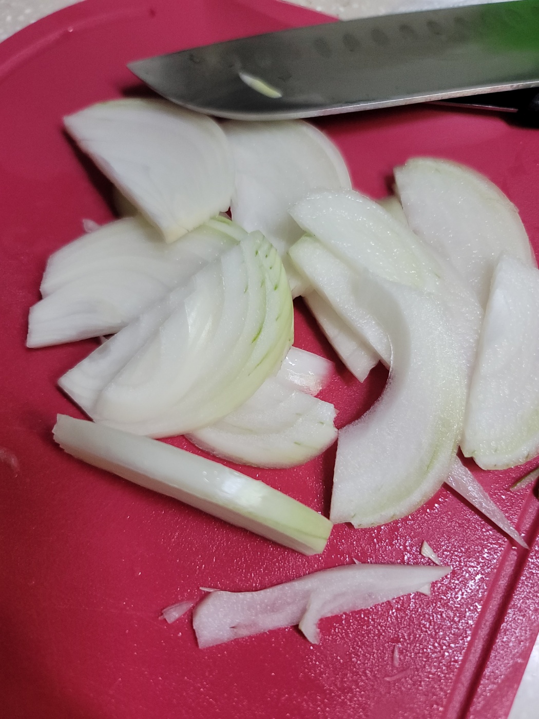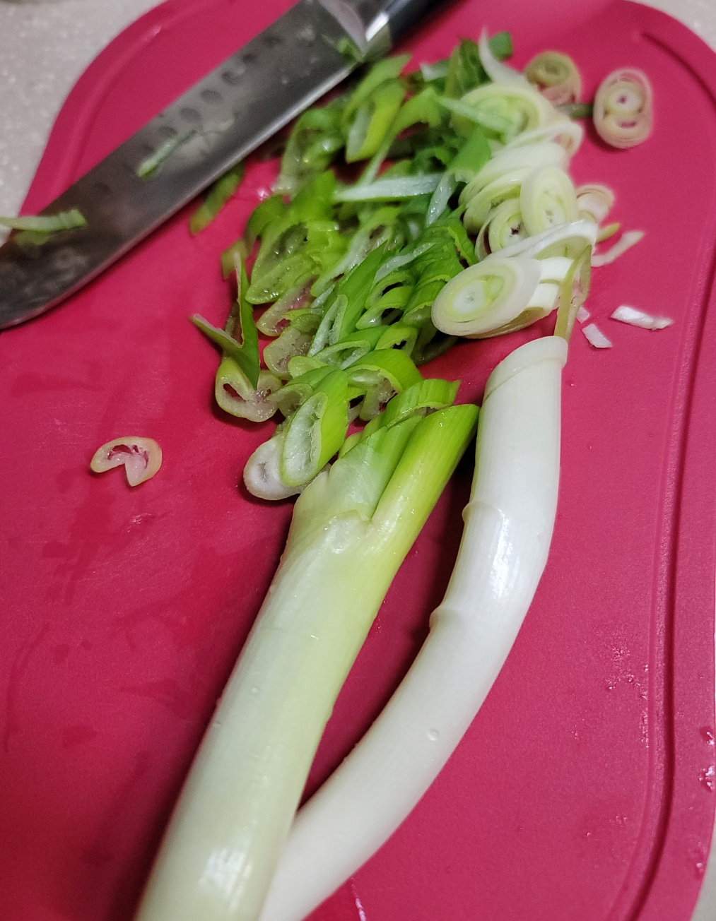 채소를 먼저 손질해 줍니다. 대파 2대는 얇게 어슷썰기 해주세요. 양파 2개는 채 썰어주세요.