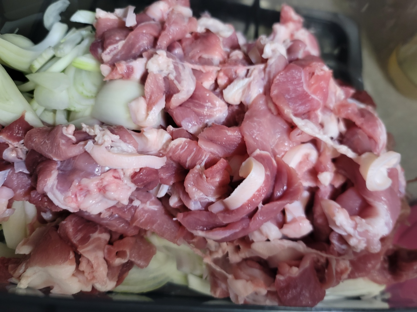 어머님네 놀러 가는데 제가 제육볶음을 해서 가져가기로 했어요. 맛있게 드셨으면 하는 마음에 류수영 님의 삼겹살 제육볶음 레시피를 이용해 봤어요. 고기는 정육점에서 통으로 된 거 썰어서 샀는데 역시 마트보다는 정육점 고기가 좋은 것 같아요. 모이는 인원이 많아서 원래 레시피의 고기보다 대용량으로 했습니다. 맛있는 대용량 제육볶음 함께 만들어볼게요.