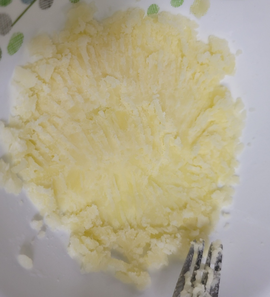 감자와 마찬가지로 포크로 열심히 으깨줍니다.