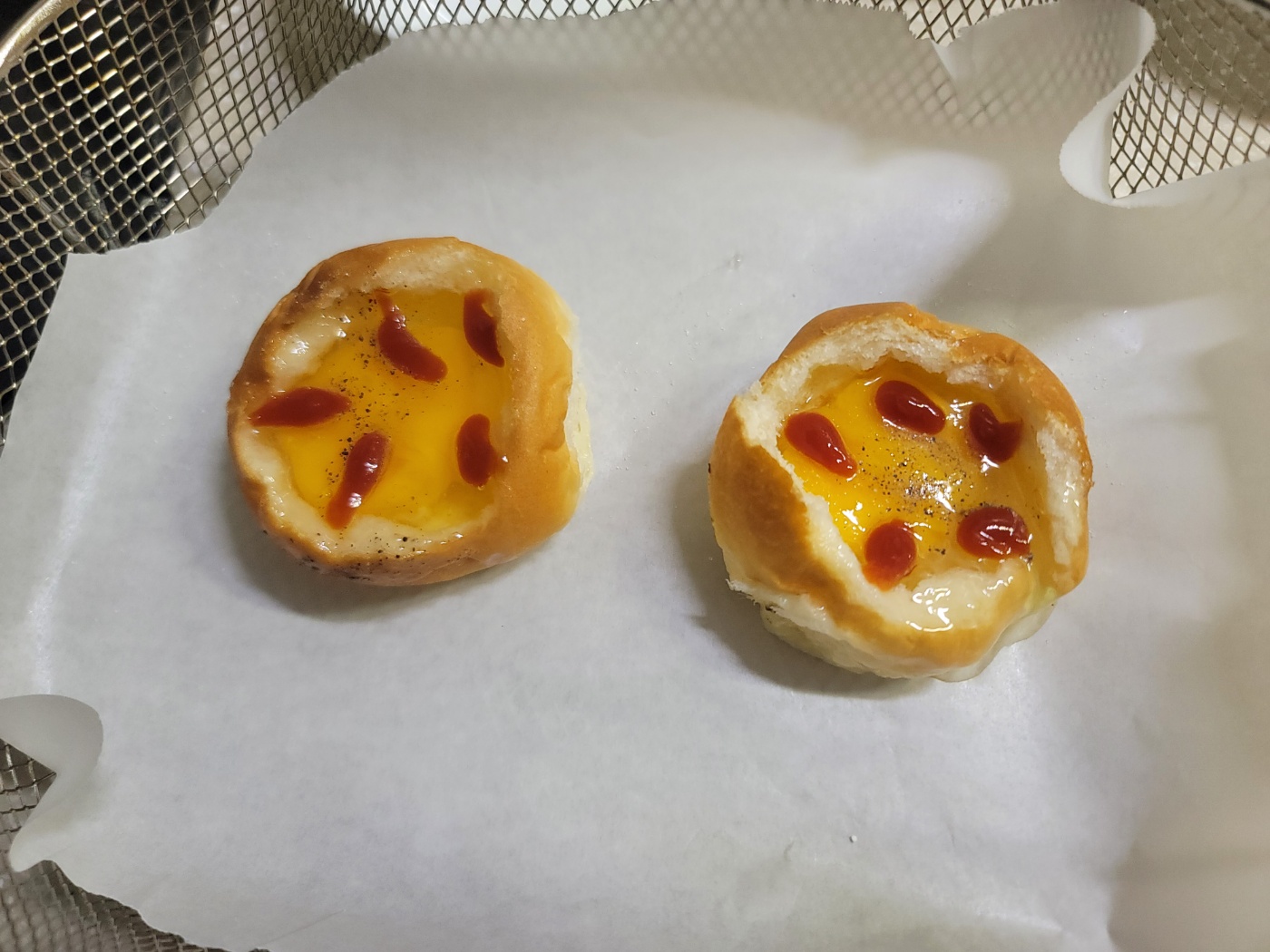 열을 가하면 계란 노른자가 터지니 미리 포크로 콕콕 터트려줍니다.