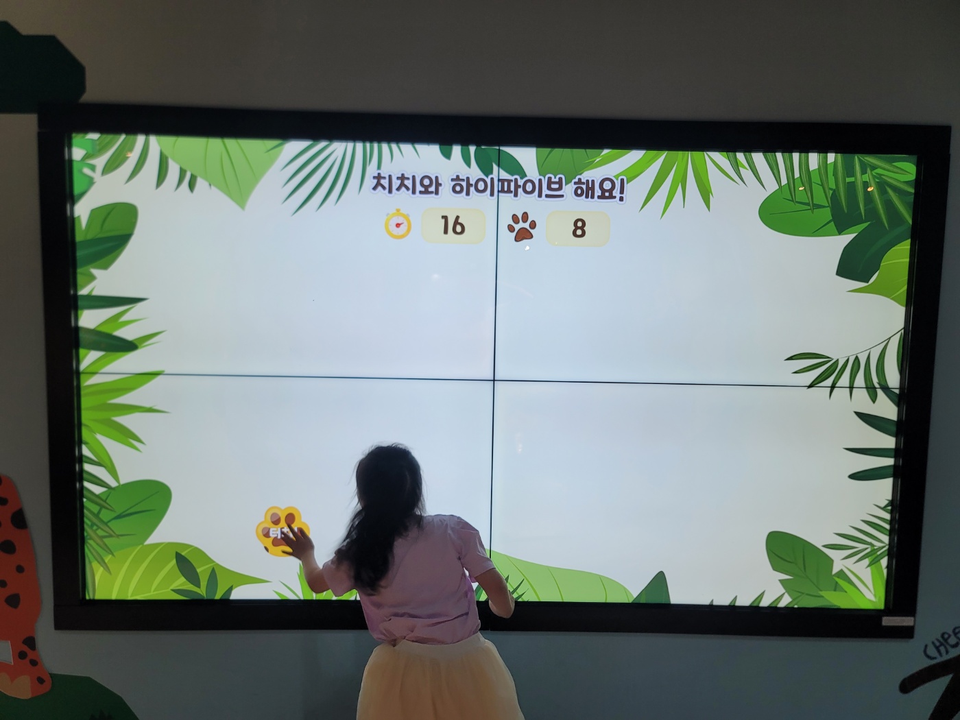 1층에는 직접 심박수를 체크하고 운동하면서 변하는 심박수를 보는 운동기구들과 코끼리와 줄다리기, 터치게임을 할 수 있는 행동존이 있어요. 저도 힘을 써봤네요. 운동 열심히 해야겠어요.