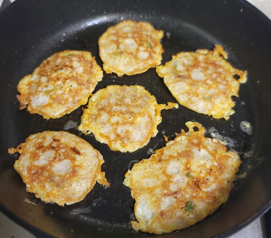 조금 후에 뒤집어줍니다. 반대편도 노릇노릇해졌군요. 조금 기다렸다가 건져주세요.