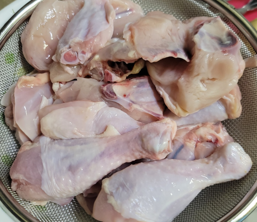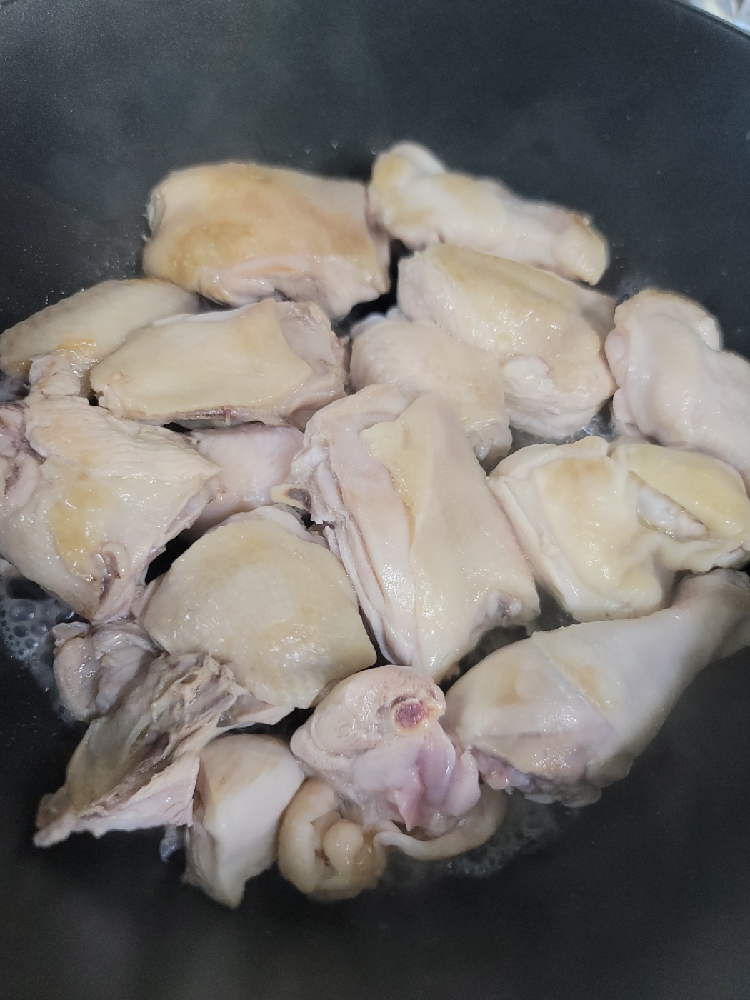 닭을 흐르는 물에 깨끗하게 씻어줍니다. 잡내 제거를 위해 내장을 제거하고 뼛가루와 핏물도 씻어줍니다. 재료를 준비할 동안 물에 담가줍니다.