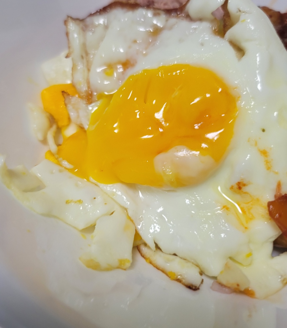 아까 계란후라이를 반숙으로 만들었던 이유! 노른자를 터트려 밥과 같이 비벼줘야 제맛이죠. 노른자의 부드러움이 섞입니다.