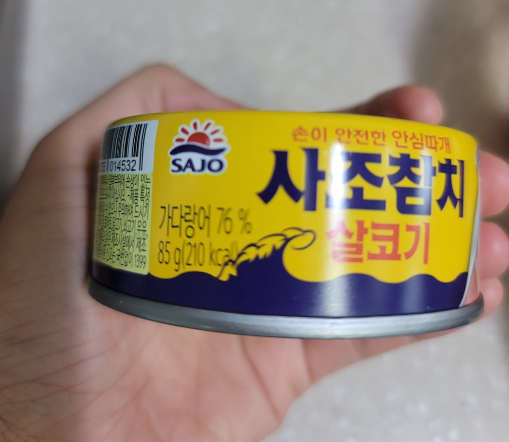 참치는 작은 캔 85g짜리를 준비해 주세요. 기름을 최대한 빼고 준비된 밥 위에 올려줍니다.