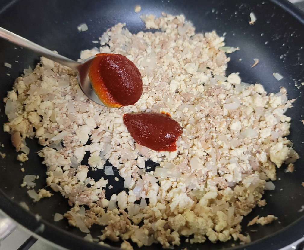 고추장 1T를 넣어줍니다. 뭉치지 않게 골고루 섞어주세요.