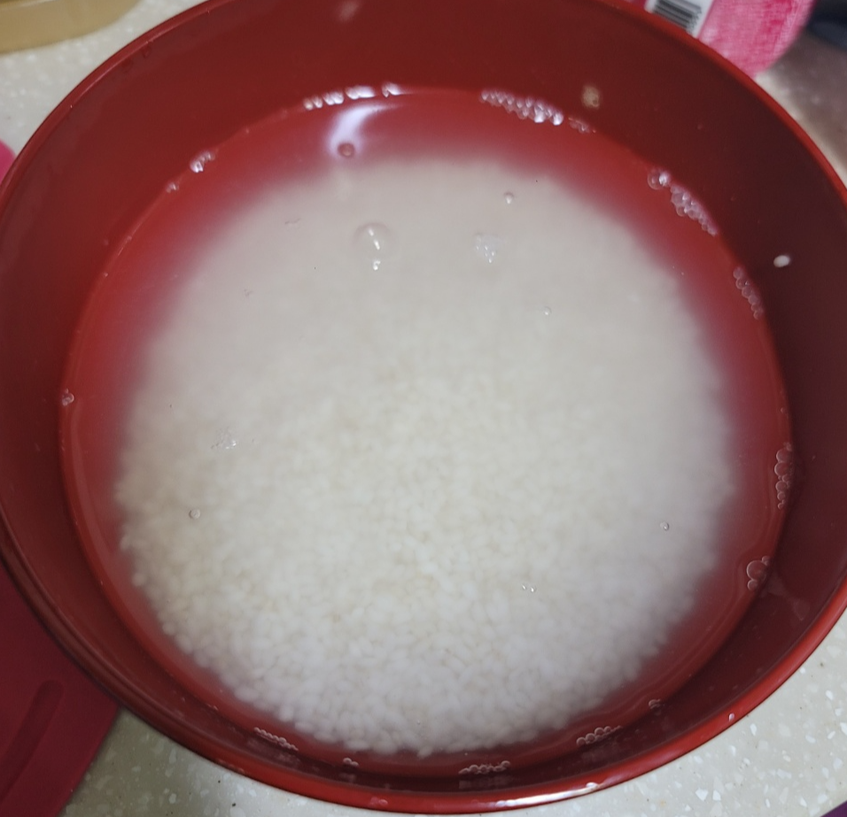 먼저 찹쌀을 한 컵 물에 불려줍니다. 있는 야채를 사용하시면 되는데요. 집에 당근과 양파가 있어서 2/3개씩 사용해 줍니다. 애호박, 버섯 등 다른 것도 첨가하면 영양도 풍부하고 맛도 풍성해질 것 같아요.