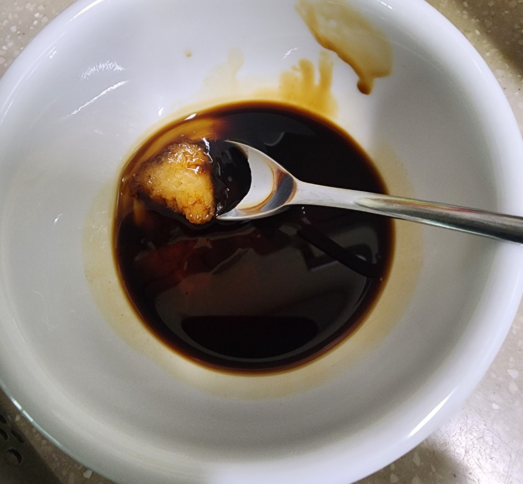 간장 1T, 굴소스 1T, 올리고당 2T, 다진마늘 0.5T, 맛술 1T와 물 2T를 섞어 줍니다.