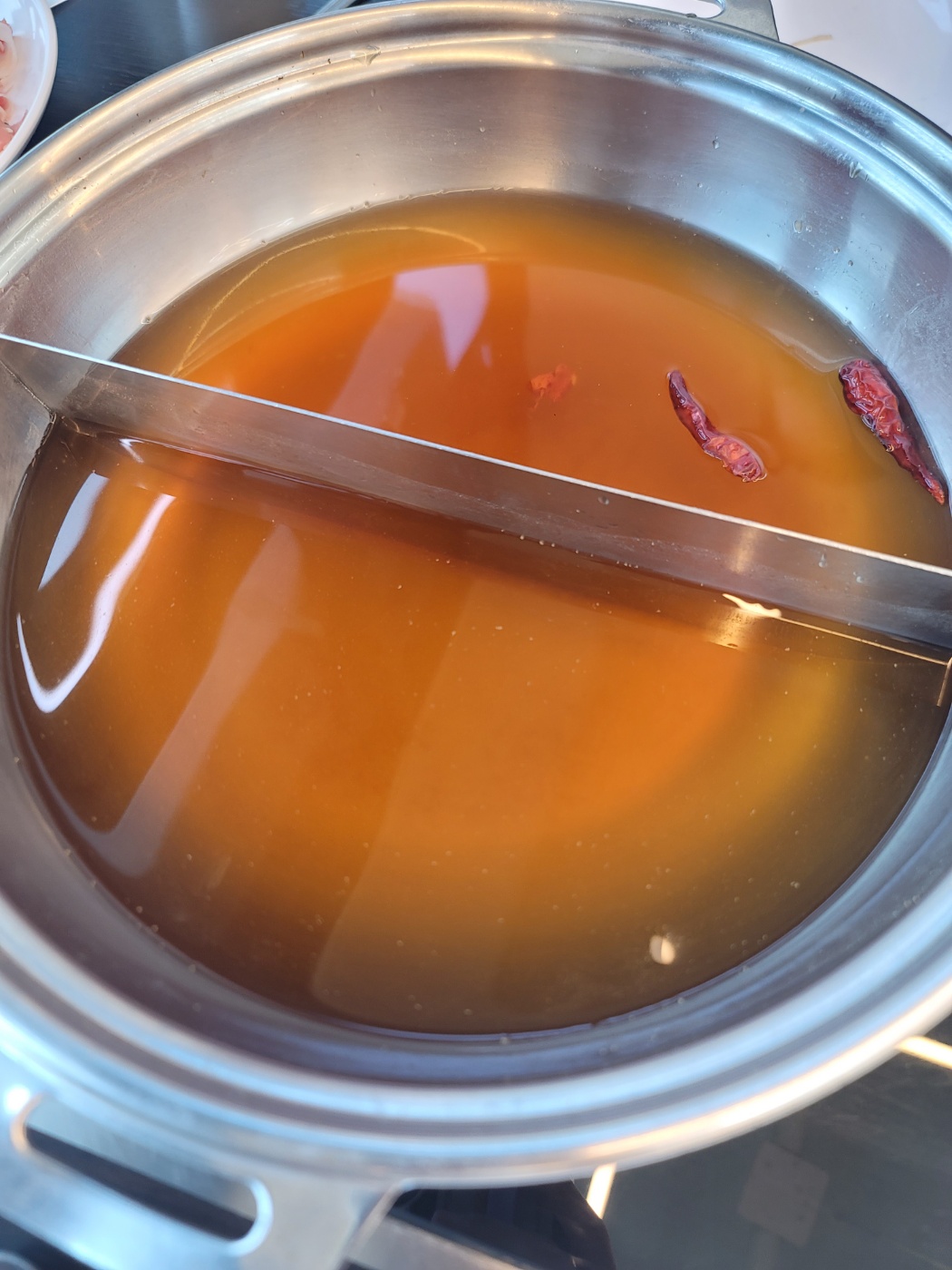 편백찜 한판을 휩쓸고 샤부샤부로 바꿨어요. 고추가 있는게 매운해물맛, 없는게 해물맛 입니다. 매운해물맛은 끝맛이 칼칼하니 시원하고 해물맛은 일반 샤브샤브 육수맛이랑 비슷합니다.